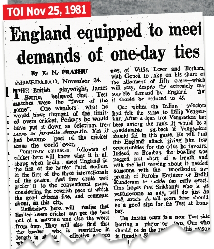 The very existence of the match represented a compromise. BCCI feared ODIs would diminish Test cricket’s importance. The board, says cricket writer Suresh Menon, was apprehensive that Test cricket might lose relevance. Players, too, considered Tests as the ultimate format.