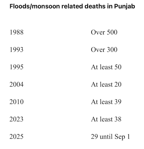 The PRSC study highlighted “some human causes leading to flooding” in Punjab, including: poor maintenance of dhussi bandhs and embankments on the rivers resulted in several breaches and weak and vulnerable patches, lack of maintenance of canals and choe banks resulted in breaches, and an inadequate drainage system designed to pass only a portion of high flood discharge, among others.