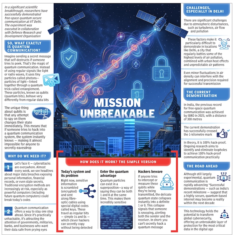 India’s previous free-space quantum communication record, achieved by Isro in 2023, was limited to 300 metres, as per experts. The latest demonstration, surpassing the 1km mark, represents a major advancement for the country’s quantum research capabilities.