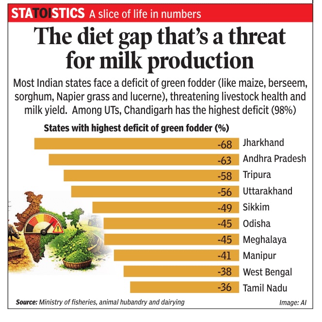 Indian states with the highest Green fodder Deficit, presumably as in 2024 or 2025