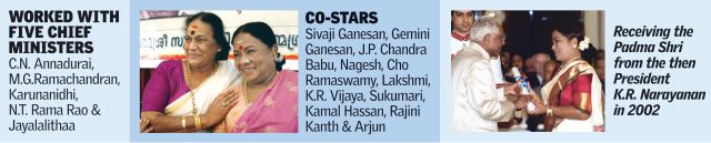»Her contribution to the film industry is immense. While her achievements — she has acted in more than 5000 stage plays and 1200 movies apart from netting several film awards and receiving Padma Sri — are many, she remained a simple, humble human being. --Vijayakant, DMDK leader.