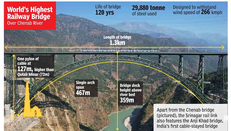 Built at a cost of around Rs 44,000 crore, including a parallel highway, the 272km rail route has 36 tunnels and 943 bridges, including the world’s highest, the Chenab Bridge. The rail route promises allweather connectivity, slashing the 800km Delhi-Srinagar journey to under 13 hours.