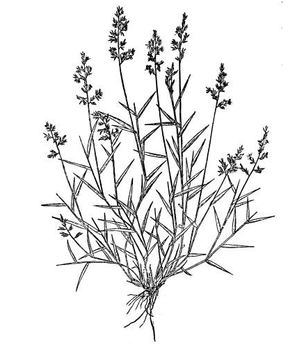 This is an elegant annual grass. Stems are tufted erect or sometimes geniculately ascending, branching freely, 6 inches to 3 feet.