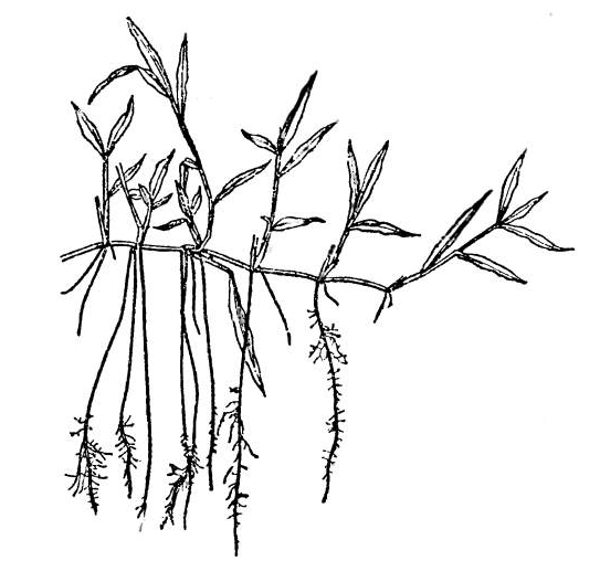 Grasses in which stolons and prostrate branches occur have, in addition to the usual radiating crown of roots at the base, aerial roots growing out of the upper nodes of the branches and fixing them to the soil. Such roots become supporting or prop roots and are particularly conspicuous in several stout tall grasses such as Andropogon Sorghum, Zea Mays and Pennisetum typhoideum. (See figs. 8 and 9.)