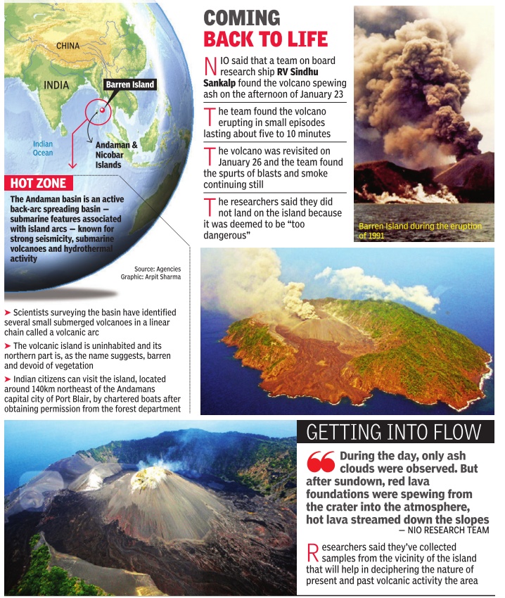 After lying dormant for 150 years, Barren Island volcano erupted in 1991 and has been showing sporadic activity since then, scientists of Goabased National Institute of Oceanography (NIO) said.