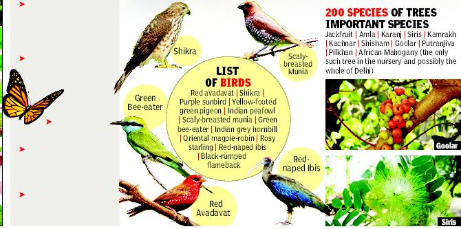 Edged by nine mounds, the microhabitat zone will replicate Delhi’s original landscape to increase environmental awareness among the 3 lakh schoolchildren who visit Humayun’s Tomb every year. AKTC has recorded 1,800 mature trees of more than 200 species at the nursery on a geographic information system (GIS) and planted another 100-odd species. “Biodiversity studies in 2012 documented 54 species of resident birds and 24 species of butterflies,’’ said an official.