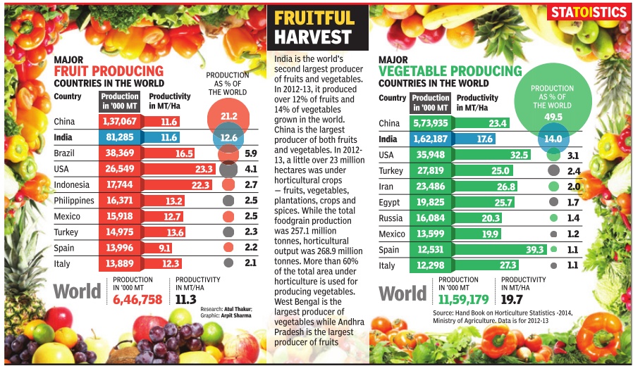 The green revolution of the 1960s and 1970s ended chronic food deficit, and while cereals still command the attention of policy makers, fruit production has surged impressively , making India the second largest global producer behind China.
