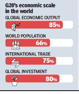 The G20 countries comprise an overwhelming chunk of global GDP, population and trade.