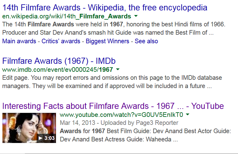 Guide swept the Filmfare Awards in 1967, for films released in the year 1966.