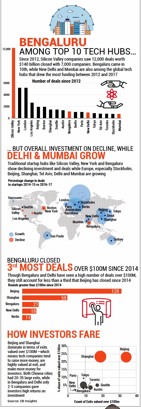 i) 2012-17: There were 3 Indian cities among the world’s Top 18 Technology hubs;