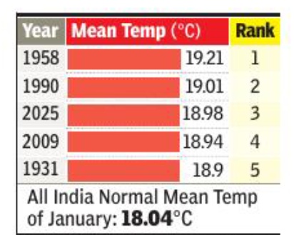 A day before wet weather hit the capital, the mercury climbed to 28.7°C on 20th, seven notches above normal, making it the warmest January day in the city in 12 years and the second warmest in at least 27 years. The sharp rise in temperature was caused by warm southerly winds sucked into the region by the western disturbance that [was] forecast to bring rain [the next day].