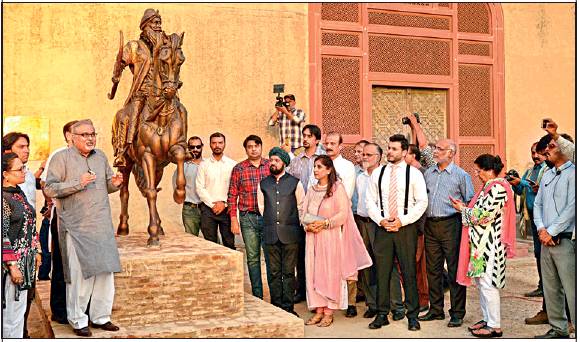 A life-size sculpture of Maharaja Ranjit Singh, who ruled over Punjab for close to 40 years in the early 19th century, was unveiled on Thursday at the historic Lahore Fort in Pakistan on his 180th death anniversary. It took eight months to complete the 8-ft-tall statue of the Sikh ruler sitting on his favourite horse Kahar Bahar. The sculpture, funded by UK-based Sikh Heritage Foundation, was installed at the Sikh Gallery of the Mai Jindan Haveli in Lahore Fort during a special ceremony attended by senior Pakistani officials