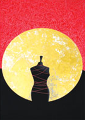 Claustrophobically embedded amidst an environment of large roses, Durrani’s mannequins appear just as she wants them to: symbols of beauty and sensuality, vacant of everything else that could make them ‘real’. The feeling of emptiness is particularly emphasised in certain paintings which depict the mannequins with their midsection missing, or deleted.