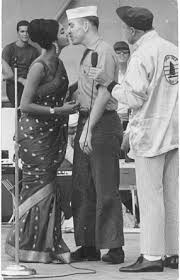 Gerald Hampton, a sailor, had the privilege of being the sailor who was picked at "random" to come up and crack jokes with world famous comedian Bob Hope and sing a song to Miss World, Reita Faria. Faria and Hope were there to entertain the American sailors. Of course, as Hampton later admitted, it all was rehearsed and planned in advance. He had rehearsed with Bob and his assistant the day before the show.