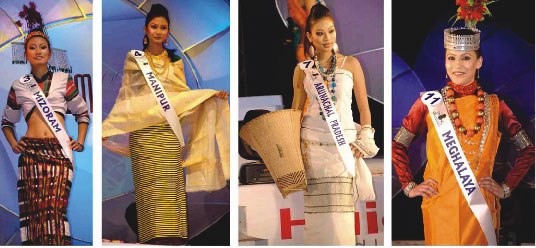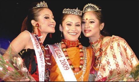 MegaMiss North East 2009; l to r: Akumnaro Imsong, Nagaland; Delphine Marbaniang,Meghalaya; Sangita Phukan, Assam From SunsilkMegaMiss North East 2013