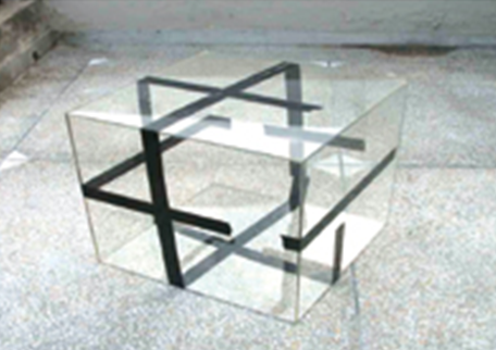 “Mohammad Ali Talpur’s minimal meditative works seemed to be a perfect counterpoint to Huma Mulji’s verve and wit. The ‘essence’ is the line. As he puts it, “the act of repeatedly making lines is similar to being obsessed with achieving a perfect line”.” His installation is a huge transparent cube, made up of 125 small cubes, each measuring 2 ft by 2 ft, with lines gliding across the surfaces, taking one on journeys never ending.”