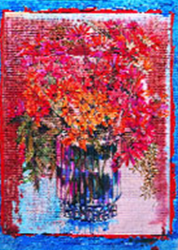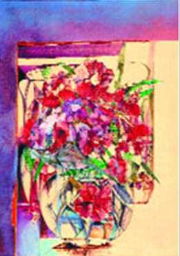 Innocent florals in vibrant colour orchestrations – this exhibition of floral paintings by Mona Naqsh on show at Unicorn Art Gallery in Karachi comes across as a brave effort. She is holding her own in an art milieu which has moved on. The flower is no longer the prime motif in today’s new art genres, mix media and issue based art, so popular with new generation artists. For them representational images of daisies and daffodils are passé. But these ethereal yet earthly symbols of fertility and hope are one of art’s most abiding clichés. Even the most austere and intellectual of painters have found it hard to resist the challenge of capturing on canvas their delicate charms.