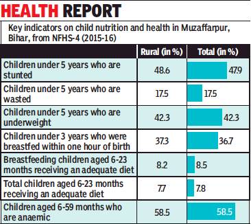 In Muzaffarpur, nearly 48% children under the age of 5 are stunted, 17.5% are wasted (too thin for their height), while 42% are underweight, according to the National Family Health Survey (NFHS)-4. “Patients from villages are rushing to town to seek treatment at tertiary care and losing time in the process. If they go to the nearest health centre or clinic, they can get immediate care and the situation can be controlled,” another health expert said.
