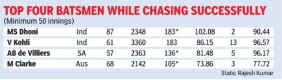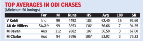 Top averages in ODI chases, Oct 2016