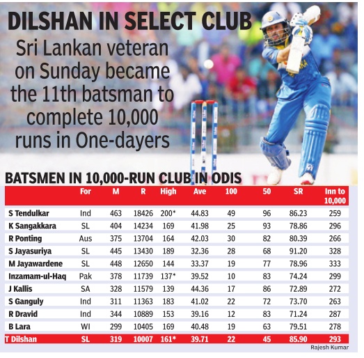 OTHER FASTEST 10,000 RUNS IN ODIs, November 5, 2018: The Times of India