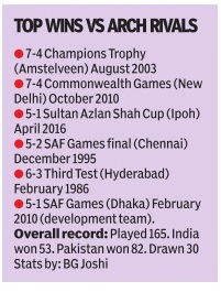 It was a year when India had a sterling record against Pakistan, right from the time they beat them at the New Delhi World Cup. Jose Brasa's famous passback technique and the elaborate build-up during attack frustrated Pakistan no end.Sandeep Singh was at his fluent best fetching two goals while Dharamvir scored the other. Pakistan's Shakeel Abbasi and Rehan Butt were on target but the Indian defence held on.But Pakistan went on to win the gold and India secured bronze is a different story altogether.