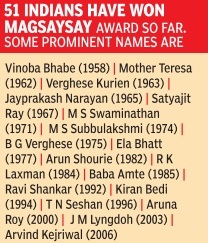 CPM’s new state secretary M V Govindan said there was a plot behind the move to present Magsaysay award to a communist leader. “Magsaysay was a prominent antiCommunist. To present the award in his name to a Communist is an attempt to dishonour the recipient. Shailaja understood this and took the right decision,” he said.