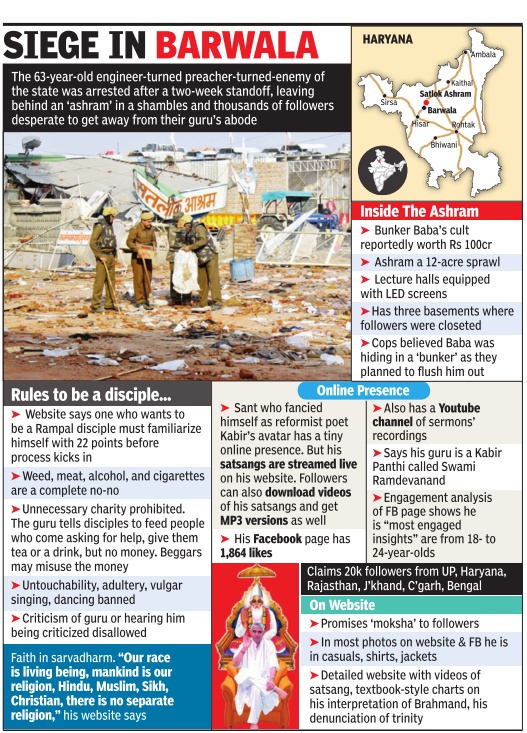 The violence forced the Haryana government to seize the Satlok Ashram set up by Rampal at Karontha of Rohtak district. Subsequently, Rampal moved base to Barwala.