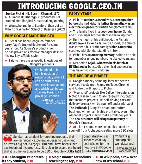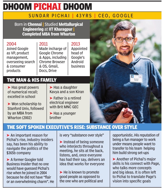 Some facts: Sundar Pichai; Graphic courtesy: The Times of India, August 12, 2015