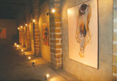 While the task of realigning established mindsets and patterns of habit will be a challenging one, I sense an energy that could contribute very positively toward a more open yet professional approach to art. The gallery itself will be suitable to larger works that are able to be viewed with proper lighting and adequate space around them. One of the gallery artists giving her time to help with the Commune, Sarah Bakhtiyar, showed her large scale works at the gallery’s opening show last year, and is presently conducting a workshop in mural painting. The façade of each of the warehouses located in the compound is ideal for murals, and in one of the projects Sarah has worked with the local children of Miskeen gali to involve these kids in creating the art on the walls. Apart from engaging the area community in art projects, the artists working here try to cultivate a sense of community and sharing by distributing clothes and other essentials to the surrounding area residents. Several other programmes such as short evening courses in fashion design and ceramics are also being offered to accommodate those working during the day.