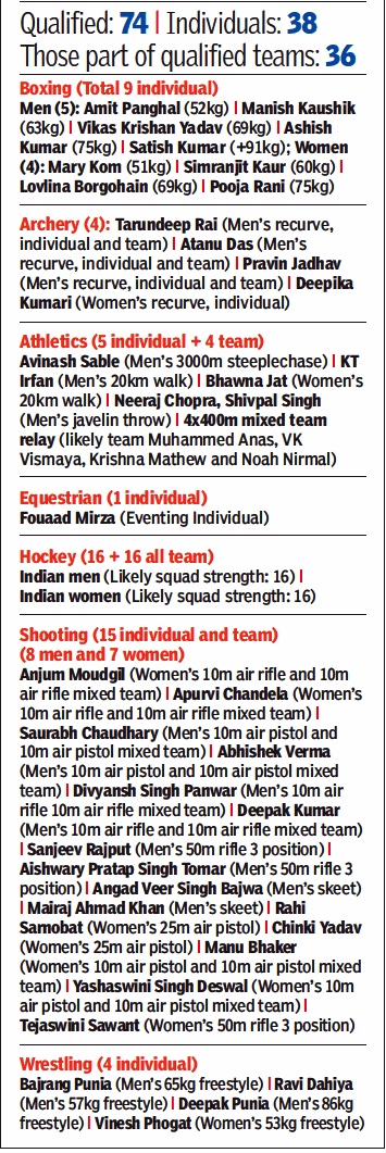 For Haryana, nine of 19 women hockey players, seven wrestlers (four women, three men), four boxers (three men, one woman) and four shooters (two women, two men) make up most of the numbers.