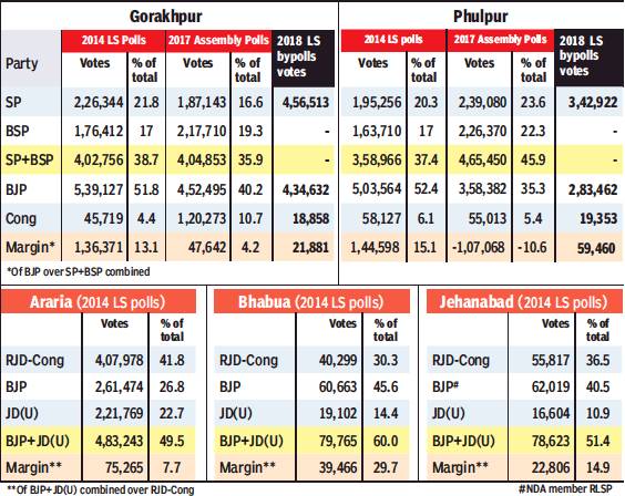 But BJP’s other ally Apna Dal could retain only one seat, Mirzapur, from where Union minister Anupriya Patel won. Two other allies, SPSP and NISHAD party, lost in Ghosi and Sant Kabir Nagar, respectively.