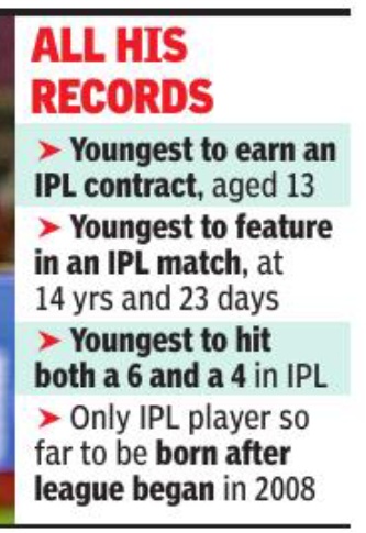 Last Nov, Rajasthan Royals caused a stir by bidding Rs 1.1 crore for 13-year-old Vaibhav Suryavanshi at the IPL mega auction. The RR talent scouts were no doubt impressed by his feats — a firstclass debut for Bihar in Jan 2024, a 58-ball ton, the fastest by an Indian, against Australia U-19s in Sept. But many still wondered if RR wasn’t taking amassive gamble. Would he be able to make the huge leap into the IPL big league, or would he be embarrassed before an audience of millions?