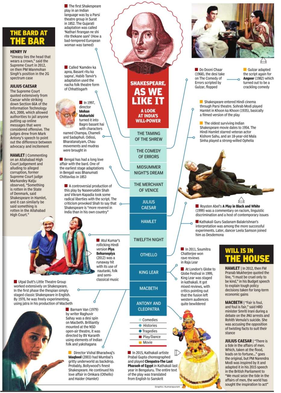 Four hundred years since the death of William Shakespeare on April 23, 1616, he remains as universal as he remains iconic. But are his works alive for us here in 2016? Do they speak to us with the kind of force and accuracy that the most potent films do? And most importantly, are they meant to? Hell, yes, they are meant to be. Shakespeare, it is always good to remember, was working in the 16th century English equivalent of HollywoodBollywood. As an actor, writer and part-owner of the `playing company', Lord Chamberlain's Men, he was the Salim-Javed-Quentin Tarantino of his time and space.