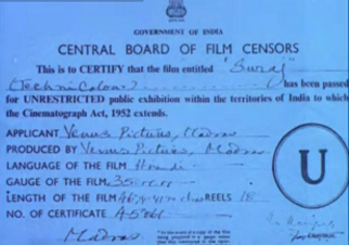When was Jhansi Ki Rani released? International sites like Imdb and YouTube say: 1956. Reliable Indian sites say: 1952. Mr Sudhir adds, '1956 it seems is the year, when a highly-edited English version was released in USA' The censor certificate on YouTube is smudged and the date that can be discerned vaguely could be 1952, 1953 or 1958.
